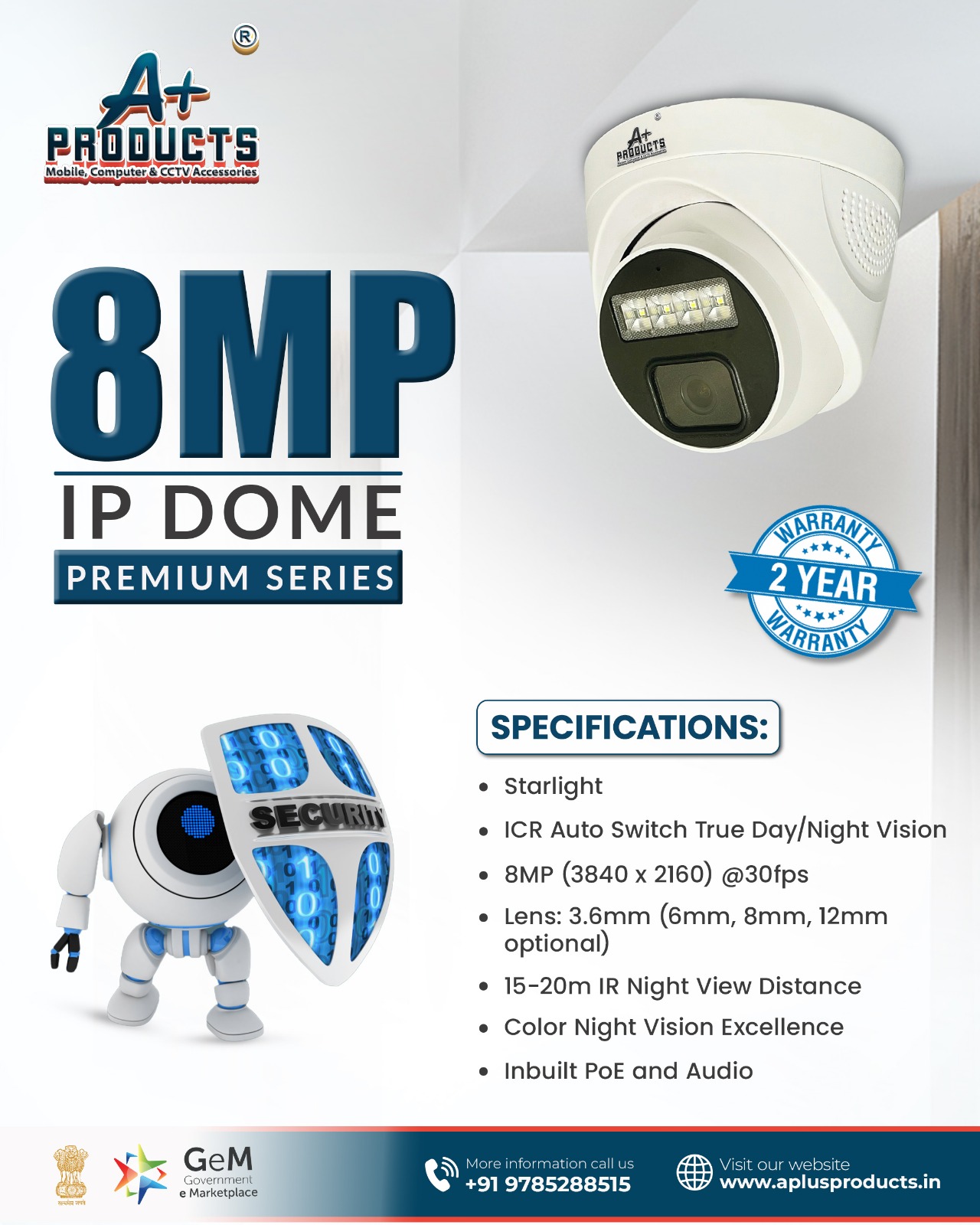 A+Products IP 8MP Dual Light Dome Camera 3.6mm With Audio